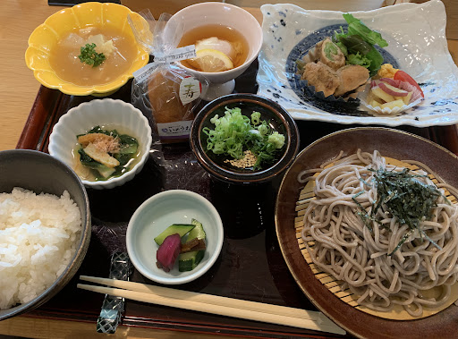 届いたセットの上に〈寿〉マークのフィナンシェが、ん?と思っていると店員さんが「敬老の日なので♪」と、なんだかホッコリしました。 どれも繊細な作りで見た目が素敵です。 お肉で巻かれた煮物が糸を引くと思ったらオクラが巻かれておりビックリしましたが、ご飯に合う味でした。 そばは手打ちでないと思いますが、そばつゆが好...