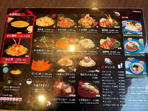 The only restaurant that serves hot food within the aquarium so I guess it’s captive market for them 😅 we tried the かに雑炊 crab porridge and udon -...
