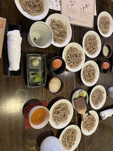 Read moreだいぶ前に行ったおそばやさんに再来。 Googleで調べて行くことが多いのですが、なんとなくで辿り着けるかなと行ってみたら行けました! ちょっとはずれにあるけれど、駐車場もあるし、また行こうってなるくらいのお店です。前回は並んでたけど、今回はすぐ入れた!ラッキー⭐︎ メニューは割とシンプルだし、出石に来たら皿そばってイメージで皿そばを大人人数頼み、子たちとシェアって思ったけど、全然全然足りなかったwめちゃくちゃ食べてた。子たち。 そして、いちばんびっくりしたのが、干物のみりん干し?みたいなの。何回もおかわり注文していたわがやwそのあと道の駅みたいなところで探してまた買うという。。。って、写真撮ってませんでした。💦 お店は座敷に大きなテーブルがあり、相席みたいな感じですが、そんな事が気にならないくらい大きなテーブルです。テーブル席もあったはず。 店員さんも気さくな雰囲気...