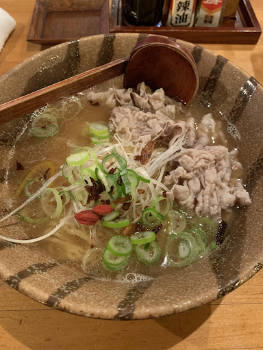 ラーメンは上湯かと思いきや少し濁ってました。鯛以外とのダブルスープ何でしょうか?すすると鯛と柚子の風味を感じます。 ただ、熱いです。温め温度が沸かすぐらいなのか、丼の加温をしていないにもかかかわらず、舌を火傷しました。しっかり空気を含みながらすする必要有りでした。