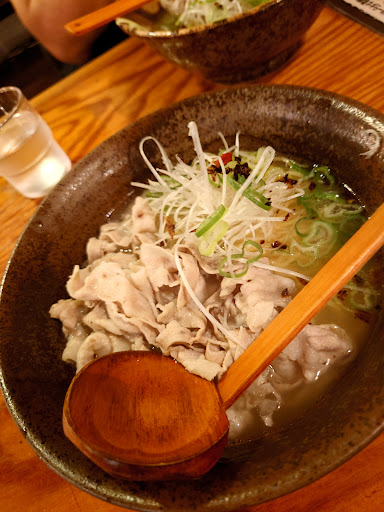 Read more店の外観は海の家。店内も海の家っぽかった。 ラーメンは、鯛しょうゆ、鯛塩、豚骨、和風京しょうゆの4種類がベース。 相方と二人で、豚しゃぶ鯛しょうゆ、鯛塩、黒炒飯を食べてみた。 まず、黒炒飯は見た目よりアッサリしていたが、パラパラし過ぎず、かと言ってベタベタしてもいない。 若い兄ちゃんが作ったにしては美味しかった。 鯛しょうゆには、豚しゃぶがとても合っていた。 鯛塩にはクコの実が乗っていて、たまにゆずが感じられたが、自分はゆずが苦手なので無くても良かった。 次回は和風京しょうゆに豚しゃぶでチャレンジしてみようと思った。 自分的にコッテリよりアッサリのが好きなので気に入った。 麺が少し柔らかいのが気になった。 食べ終わった頃にまだイケそうな気がしたので、量は少な目かなと。 店的には、TKG押しのようだった。