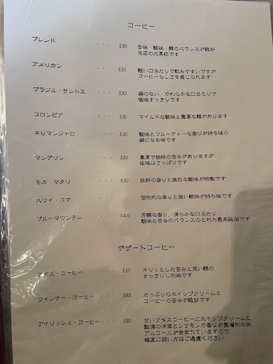 Read more日曜の3時頃なのに車がほとんど無いなと思いつつドアを開けた瞬間、強烈なタバコのヤニ臭。 内装はレトロで落ち着いた雰囲気でお店の方の感じが良くコーヒーもチーズケーキも美味しかったですが、私はタバコの臭いが苦手なのでリピートしないと思います。 今は喫煙可能な店が少ないのでタバコと一緒にコーヒーを楽しみたい方には貴重なお店なのでしょうね。 ただ、喫煙者でもヤニ臭は無い方が快適だと思うので換気設備がもう少しきちんと機能していたら居心地の良い空間になるのでは...