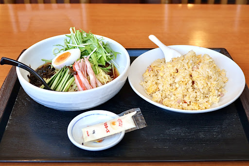 夏限定の得々冷麺セットが始まってたので 冷やし中華+ニンニク炒飯を注文です。