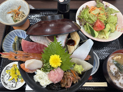 Read more【豊田でもちゃんとした海鮮丼食べれる】 前から気になっていたお店にお昼ひとりで伺いました。 香水が、服の柔軟剤が、、、ってクチコミを見ていたので、お客様に美味しく食べて欲しい、そこを大事にしてるんだろうな、と。 そんなお店の姿勢は共感できるので1回は伺ってみたかったのです。 ✳️【お昼の限定10食海鮮丼】 これに決めて行ったのに、煮魚のお膳とか見ると迷いましたが、やっぱり海鮮丼で。 隙間によく、きゅうりの飾り切りを挿したりするお店ありますが、こちらは 盛り盛りにたくさんお刺身が入ってました。 ぷりっぷり車海老ドーン! マグロも厚切りジェイソンwww。 いか、穴子、あと忘れました。夢中過ぎてw。 酢飯じゃないのも好きでした。 ⭐︎小鉢2品/⭐︎野菜サラダ ⭐︎もずくのお味噌汁 ⭐︎香の物 豊田にこんなお食事いただけるとこ、あったなんて。