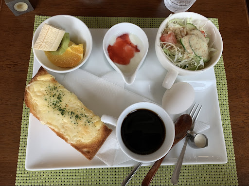 Read moreモーニングで行きました。 懐かしの昭和喫茶な雰囲気で、田舎のお年寄りの憩いの場となっています。早朝から(長年の常連であろう)お年寄りの皆様の賑やかな座談会で、朝の長閑や静けさを求める客層には不向きだと思いますし、何より、コロナが爆発的に感染拡大している今(2022年8月6日)、誰一人としてマスク着用せず食後の自由な歓談をされているのには気持ちが悪くなったくらいです。 常連客らが「ママ」と呼んでおられる店主(かな?)の女性の方もマスク着用せず仕事をされています。「ママ」がこの有様では仕方ないか…と。 モーニングの内容は、ドリンク代に200円プラスでチーズトースト(1/2枚)、サラダ、ヨーグルト、フルーツ、ゆで玉子が付いてきました。 内容・値段的・盛り付け方、全てにおいて可もなく不可もなく。ホットコーヒーはじゃっかん酸味がありますが、舌触りは丸いです。田舎にしてはコーヒー1杯が450円はお高めかな…という印象。200円プラスでなく全てサービスなら褒め讃えたところですが(笑)。 「ママ」がたった1人でお店を切り盛りされておられました。清楚でお上品、愛想の良いオバサマでいらっしゃいました。 モーニングメニューには手作りケーキの盛り合わせみたいなのもあってすごく気になりました。 ランチメニューは値段だけ見ていたら全体にお値段お高め(肉丼=1200円ドリンク付き…等)でした。 店内は非常に狭く換気も悪そう、駐車場も狭いので、(おそらく常連の?)お年寄りのお客さんは平気で路駐をされていました。 色んな意味で自由な喫茶店だと寒心・・・...