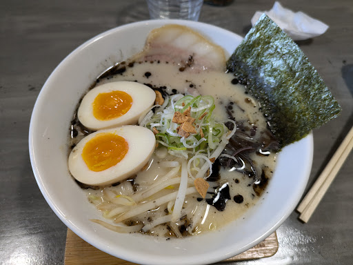 せっかく豊田までスポーツ観戦に行ったので、ラーメンはどこかで…と直前に調べて訪問。 お名前はよく聞いていたお店ですが、実際の訪問は初めてでした。 外観も内観もインテリアも小物も、現代風のカフェのようなオシャレなつくりですね。ちなみにカウンターだけなんで、あまり子連れにはおすすめしません。 クラフトビールなんかもたくさん揃えていて、どこかバルのような…でも、メニューは普通にラーメン屋なんですが。 注文は席で、お金は後払いです。メニュー表にトッピングや麺の硬さがフローチャート状に書かれているのでとても分かりやすいし、注文がしやすいです。 ラーメンはお店の名称どおり、細麺豚骨なのですが、バリエーションはいくつかあります(メニュー写真参照)。 この中で今回は黒マー油豚骨をチョイス。半熟たまごトッピングで硬さははりがねにしました。ちなみに私は頼んでいないですが、替え玉にも色々種類があります。
