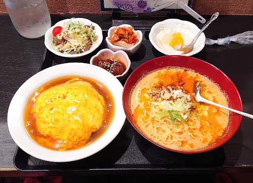 とりあえず 頂いたのは 天津飯セット(味噌ラーメン)の味噌ラーメンを担々麺に変更して頂きました(メニュー外ですが)。 本来の天津飯+味噌ラーの100円プラスで、1100円(税込み)。 普通に 天津飯と 担々麺だけかな?と思いきや… サラダに、肉団子の小鉢と キムチ和え冷奴。デザートに 杏仁豆腐まで 付いています✨ しかも… 天津飯、小サイズと書いていながら、ほぼ普通サイズ(笑) いやはや。コレは凄いお値打ちです🎵 肝心の 味ですが… やっぱり、担々麺は思った通りで 美味い❗。ほんのり甘辛で、ゴマが良く効いています😊。 天津飯は、玉子が厚めで、しっかりした食感で、コレまた美味い。 コレは、再訪問...