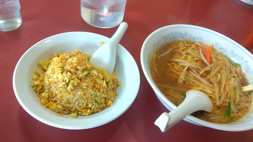 Read moreお昼を探していたら、空腹に前でUターンして戻りました。 ランチメチャ安い! 中に入って、メニュー拝見、取り敢えずランチで、味噌ラーメン+中華飯で! 雑誌がたくさんあります。読んでいる暇も無く提供が早いです。 味噌ラーメンはちょい具が少ないですが、この金額でだと妥当な味でした。麺も普通に美味しいです。中華飯はちょい小ぶりの中華飯でした。まぁ〜こんくらいが良いかもね。メタボに!笑笑 塩味が上手な味付けで気に入りました。 お水も直ぐにピッチャー持ってきてくれました。 寒い日でしたが、常連さんかな?冷やし坦々麺頼んでいたので、次回挑戦してみよー ふらっと寄った店舗でしたが、正解でした。 レジの...
