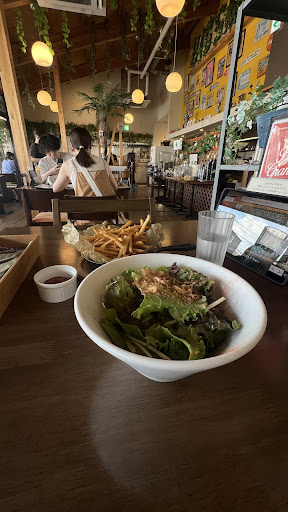 Read more内外装とも初デートのカップルにピッタリ。 席が窮屈じゃないので、子連れでも問題無し。 人気ありすぎて結構常時混んでいるようです。 ちょっと値段高めな気もしますが、そのおかげでお客さんの層もキラキラ感がある感じの人ばかりの気がします。 ドリンクバーに青汁がありますので、 長年付き合って空気のような存在になった彼氏には「あなたの体のことを1番に思っているの!」と言いながら、コップになみなみと注いで飲ませてあげましょう。笑顔で飲み干してくれるはずです。それを見て惚れ直しましょう。 メニューがどれもおしゃれなので、きっと長くて白い帽子をかぶったシェフが料理をしているんだろうなぁと妄想しながら厨房を覗くと、和食が似合う雰囲気のおっちゃんがテキパキ料理しています。で、運ばれてきた料理を食べてみたら、やっぱり長くて白い帽子をかぶっているシェフが料理したとしか思えない、しっかり整った洋食の王道みたいな味でした。たぶんハズレの料理は無いかと。 あと、サラダの器がでっかくてびっくりしました。間違って味噌ラーメン頼んだかと思った。器はどーんとしてますが、洋食の王道みたいな繊細なドレッシングがかかっていて、これまた白くて長い帽子...