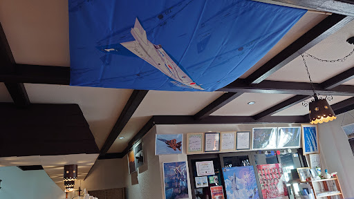 Read moreブルーインパルスをコンセプトにした喫茶店。こんなお店あったんだ…と気になっていて、飛行機好きの友人と共にモーニング目的で初来店。駐車場の時点でブルーインパルスがお迎えw わくわくと期待が止まらない看板と外観。 扉を開けるとそこは航空博物館さながら。コンセプトだけではなく、モーニングの価格とお味も申し分なし。(通常モーニングはドリンク代のみでトースト付き、ドリンク代+¥280で➀ハムエッグ・トースト・サラダ、②ホットドック・トースト・ゆで卵かが選べる) 今回は➀のハムエッグモーニングを選択。ハムエッグは玉子2個使用でボリューム満点!全てがブルーで統一されていて、カップもブルーインパルス仕様でかわいい。もちろん店内はブルーインパルス満載で居心地の良い空間が広がる。グッズ販売もあり。 ブルーインパルス好きさんの聖地と言えるべきお...