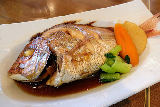 配膳されてきた鯛の煮付けはとてもきれいに盛り付けられていてとても美味しそうです。 ただ、鯛自体にあまり味が染みておらず、特に上側の身は薄味であっさりしていました。 下側は煮汁に浸かっていたので美味しかったです。 付け合わせの大根も中まで全然味が染み込んでいませんでした。