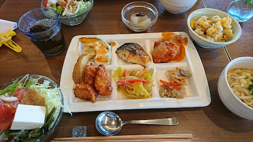Read moreかつて自然食ビュッフェだった頃はよく行きましたが、コロナ禍以降スタイルを大きく変えての定食屋さんとなっても私のお気に入りで、午後からのんびりできそうな日は訪れます。 小鉢で色々なお料理を少しずつ食べられるのは嬉しく、また身体に優しいようなあっさりの味付けも、ヘルシー志向な私にとっては非常にありがたいです。 ただし、お値段は少しお高めの設定です。 店内は広々としていますが、いつも混んでいます。団体やファミリーで来られるお客さんが少なくなく、そのせいもあっていっぱい、そしていつも非常に賑やかです。 せっかくお料理はあっさり落ち着いた様相で気分良いところ、店内の喧騒とした雰囲気は残念です。席が一気に見渡せるオープンスペースのような、ホールのような感じなのが、余計に落ち着かなさを際立たせます。 駐車場は、お隣のパン屋さん...