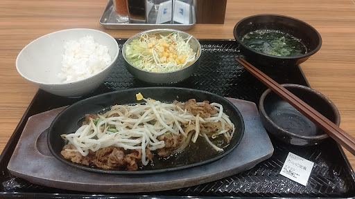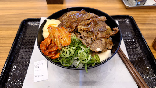 Read more彼に連れて行ってもらいました(〃∇〃) 入店後、右側の券売機で食券を購入し、店員に渡して、引き換えに呼び出しベルと半券をもらい、席で待つ。 呼び出しベルが鳴ったら取りに行く、水も箸もセルフで片付けも返却口へ持っていくオールセルフ店です。 丼ものは、種類により小、並、大盛とできるものとできないもの、また、上の肉のみ増量できるものできないもの、わかめスープがつくものとつかないものがあります。 頼んだ丼ものと別種類の肉の追加はできません。