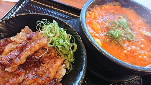 男性なら丼ものの大盛りや、 スン豆腐に、ラーメンやトッポギ追加、 また、丼もの単品とスン豆腐定食にして米ダブル、等でないと足りないかもしれないな、と、感じました。