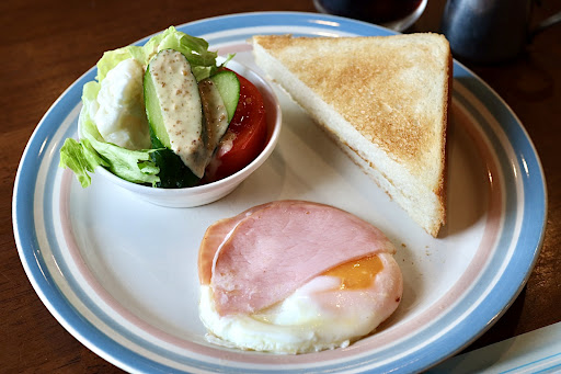 なんでも頑張り系のお店。 モーニング目当てで来店しました。 喫茶店とすれば、まぁ少し早め営業ですが、パン屋さんと考えれば朝早い7時30分から営業しています。店主さんも元気で明るく優しい人なので、急いでいるときは少し早めに行っても買わせていただけそうです。