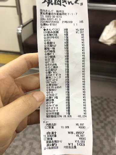 以下利用時の状況↓ 客の飛ばした油やタレの汚れがあちらこちらに散在しており、カトラリーの中の手拭きの袋にまで付着。 タッチパネルは注文で必須なのに触れたくないレベルに汚く、客を案内する前に掃除していない様子。埃もかなり溜まっている。 テーブルはベタベタしていて気持ち悪いので手拭きで拭いてみたが茶色どころか緑っぽくて本当に気持ち悪かった。もちろん箸も拭いてから使用しました。 床もタレやらゴミが散乱しており、靴跡が残っていて歩く度にベタベタする。 このクチコミを書く時に気がついたが他の利用客はテーブルにゴキブリが挟まっていたとか。 想像に容易い。そりゃそうなるだろうという印象。