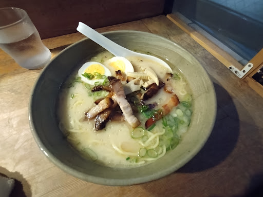 Read more最近、SNSで見かけて気になったので平日の19時頃に初訪問。 駐車場が無いのでセンターパレスの立体駐車場を利用。 お店は2Fで階段を上がるとカウンター席のみの大人の雰囲気のお店。 先客は居なかったので待つことなく1番奥の席に着席。 SNSで見かけた新作らうめん(こがしチャーシュー和風パイタンスープ)@950、トッピングの玉子@150、ぎょうざ@400を注文。 スープは優しい味だが、しっかりとした味があり個人的には好きなスープでした。特にこがしチャーシューが絶品でとても美味しかったです。 メニューもいろいろあり、同じ場所で33年も続いているとのことなので味は間違いなく美味しいのだと思います。 カレーらうめんと冷しらうめんも気になったので近い内にまた再訪したいと思い...