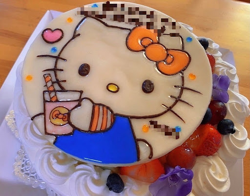 上のキティちゃんをパカっと外すと 下の綺麗なケーキを切って頂けるので デコを切らなくていいのが勿体無くなくてイイ🩷 そして、ケーキもむち...