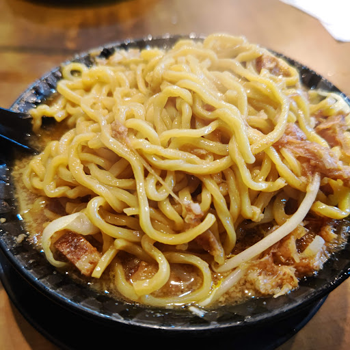 二郎系とは言うもののいわゆる「ブレ」を履き違えてのオーダーミスや「二郎ってこういうものでしょ?」と勘違いしたコールなどのスタイル それでいて無料トッピングマシへの強気な「お残しは罰金」のポップ ガワは似ているが二郎系とは言えない いわゆる流行りスタイルの便乗商法で、またこの地に他に二郎、二郎系がないためやりたい放題やっている感じ それなりに客は入っているのでモノ珍しさや若者のとにかく量だけ食べたいというもので成り立っているお店 オーナーは恐らく味やスタイルにこだわりはなく、ブームが廃れたらまた別の形で営業するような流行りモノを短期で稼ぐスタイルの商...