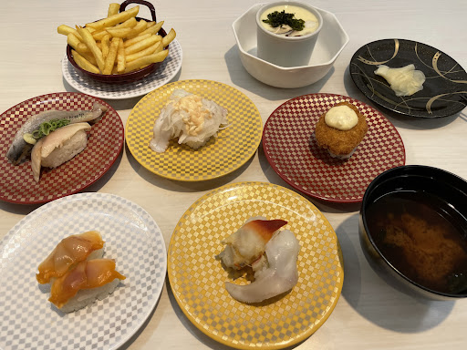 Read moreI love the ¥100 sushi go rounds here in Japan. I came here for dinner, there were no lines and I was seated right away. The amount of options are ridiculous. They don’t only have sushi, but fried chicken, fries, soups, icecream etc.. Most dishes are ¥100, you can order your own dishes and everything comes quickly. I love the fact you can order fresh...
