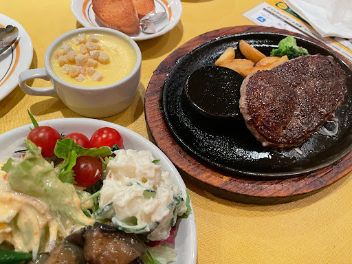 Read moreハンバーグ、ステーキ、 カニクリームコロッケなど 美味しかったです! サラダバー付きで色々なものが ついていて驚きました(笑) サラダ、カレー、デザート 惣菜、ごばん、ガーリックライス などなど いいお店を見つけたと! 思ったんですが デザートは残念でした…… コーヒーゼリーは固く繊維を 潰して食べてるような食感 たい焼き、ワッフルを 作れるのはいいのですが 生地は同じなので食感の違いが 欲しいところ焼く時間をもう少し変えるか 生地を考えて欲しいかなと思いました。 申し訳ないですが生地が美味しくない……