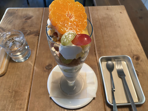今回は季節のパフェをいただきました。 時期によって値段が異なるのでしょうか、今は表示の通り、850円でした。 パフェにはオレンジやキウイ、ブドウ、マスカット、パイナップルがはいっていて、柑橘系が多いのでさっぱり食べることができました。 間はナッツやフレーク、バニラアイスやクリームでした。 さっぱりめのパフェを食べるのは初めてでしたがとても美味しかったです。