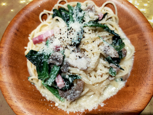 Read more2024/06/02の午後3時40分頃いき、運悪く8名オーダーが入ったばかりのところにオーダーしました。 案の定、待てども待てとも何もきません。 30分たちスープだけきました。 料理の提供が遅れる旨の言葉もなし。 5分してほうれん草ソテー。 店員が何も言わないので、こちらから、あと10分以内に作れないようならキャンセルする旨伝えたところ、慌てて作られたと思われるペペロンチーノつゆだく(笑)と、オーブンから引っ張りだしたミド、よく焼けていない野菜とキノコのピザがきました。 全てばらばらでかつ、45分というお粗末な結果。