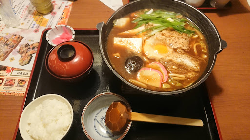 2024/8/23 味噌煮込みうどんがたべたくて、友人を誘って伺いました。 煮込みうどんは 赤味噌と白味噌とカレーの3酒類あります。 彦根出身の友人は白味噌が馴染み深いそうですが、私は味噌煮込みと言えば赤味噌…なので 二人共 赤味噌に決定です。 卵も青ネギも火が通ってないと思ったら コンロの固形燃料に火が点いていて 下からグツグツと煮えてくる。 冷めない工夫が良いですね。 とても具だくさんで、レンコン 干し椎茸 鶏肉 お揚げ豆腐 蒲鉾等 色々入っていて 堅めの麺も とても美味しかったです。