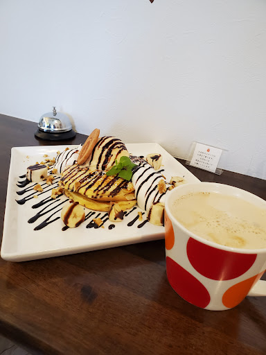 Read moreパンケーキが食べたくて初めての訪問です。 日曜日の13時過ぎ頃に到着したのですが、店内は私達夫婦2名がちょうど座れて後は満席でした。 メニューには“注文後20分程お時間がかかります”と明記してありました。 私達はスタンダードバナナッツのパンケーキとホットカフェオレ、アイスカフェオレを注文しました。 スフレパンケーキとスタンダードと選ぶ事ができるそうなのですが、スタンダードのパンケーキにしました。 15分程して注文したお品が運ばれてきました。 三枚重なっているパンケーキにアイスとホイップ、チョコソース、ナッツがかかっていて最初は美味しく食べていたのですが、、、食べ続けていると苦く感じて良く見るとパンケーキの一枚の裏側が真っ黒に焦げていて香りも焦げ臭くて美味しくなかったです。 アイスとホイップで香りと味を誤魔化して最後までなんとか食べました。 注文の際テーブルの上のベルを鳴らしてスタッフを呼んだのですが、スタッフ同士の連携が全く取れていないようで一人の方が来てくださったのですが又違うスタッフの方が来てくださったりとバタバタでした。 帰りにお会計する際もベルを鳴らしてスタッフを呼ぶのですが、一度鳴らしてお会計の準備をしてくださっている途中に又違うスタッフがお会計に来られたりと、、、、フロアの対応をもう少し何とかして頂けないかと思いました。 全く落ち着きません。それに焦げ臭いパンケーキで美味しくあり...