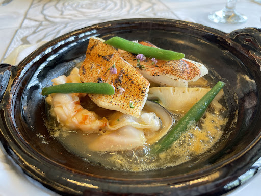 Read more津市のなぎさまち(津エアポートライン)の桟橋近くにある、ブイヤベースをメインとしている珍しいスタイルのレストランです。 これまで2回訪れていて、1回目はランチで5,800円のブイヤベースのコース、2回目は、よく利用しているレストランサイトで、夜の予約が出来たので12,000円のスペシャルコースを予約しました。 4,000円クラスのセットメニュー以外は前日までの予約が必要です。 前菜は、主に三重県の産物を中心に使ったもので、料理の品名を見ながら、ゆっくりと味わう事が出来ました。 メインは1回目はブイヤベース、2回目は松阪牛でした。 ブイヤベースは主に季節の魚を入れていて、1回目は、甘鯛の鱗をパリパリに焼いているのが良かったです。 ディナーのデザートは撮り忘れたのですが、シャインマスカッ...