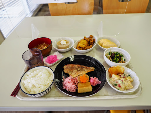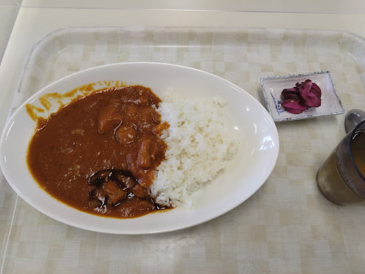 Read more入り口のメニュー表を見つつ進むと、次は本日のメニューのサンプルが並んでます。その辺りで何を選ぶか心を決めておいて、その先に置かれている食べ物を盆にのせ、突き当りまで行くと精算機があるのでそこでお支払い、その後にお茶などをいただくコーナーがあります。 一連の流れが分からずとも、店員さんが親切に案内してくれますので、不覚をとることはないでしょう。 限定5食というカレーライスをいただきましたが、530円と安いのに具がゴロゴロしていて美味しかったです。