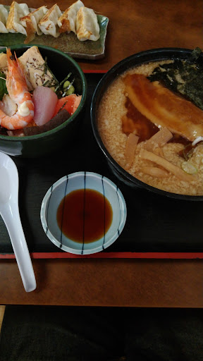 ラーメンと半ライスで香物が付いて、さらに1品の刺身or唐揚げ(2個)or餃子(3個)のどれかが選べるという暗証番号(大袈裟)なみの組み合わせが可能(笑)