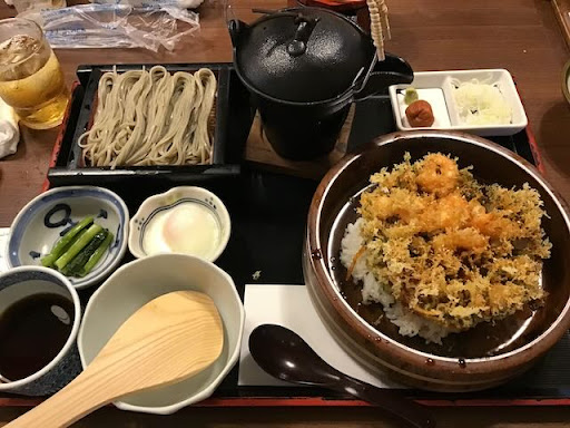 相変わらずお蕎麦はおいしい。 天ぷらもサクサク。 海老、めごち、イカ、じゃがいも、ナス、椎茸、アスパラの天ぷら付き。
