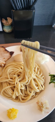 Read more前々から煮干し好きとしては気になっていたお店です。 以前の場所とは移転して変わったのかな?タイミング合って行くことが出来ました。 まず入店時に、このご時世ですので非常にコロナ対策がしっかりされていると感じましたが、その後店員さんが顎マスクしてバックヤードに声上げたり、Uの字のカウンターに仕切り板なしの配置で他のお客さん誘導したりで対策は表面上だけなのかな?って感じました。 肝心の料理のほうですが、普通のラーメンや、背油、つけ麺、サイドメニューなどラインナップは豊富でしたが今回は某雑誌のスタンプラリーでお邪魔したので、そちらで紹介されていた鬼映えつけ麺 980円)を頂きました。 (ただ待っている間、誰もつけ麺を頼まれていなので若干の心配はありましたw) 結果から言うと、麺・・・ツルツルして味わい深く好みです。 かの、とみ田と同じ小麦粉を使用しているようで、作り方もこだわりが感じられ、噛めば噛むほど麺のうま味が感じられますが、つけ汁が大量の魚粉を薄いだし汁に醤油を合わせたような感じの味で全く深みなくジャリジャリして苦かったです。(ただこれは好みもあるので一概には言えませんが…) 家庭用の麺つゆをお湯で割って何も入れずに食べたほうが美味しいレベルでした。 私の頼んだ鬼映えつけ麺も、様々な具材が載っていますが、つけ汁があれなんであまり相性が良いとは言えず、食べ方ガイドを見ながら食べていたせいか、美味しかったというより疲れたという印象。 最後に海老油を入れてパスタ風にアレンジは、通常のつけ汁で食べるより美味しかったですが、海老油に大量の海老の硬い殻が入っていたので、口当たりがあまり良くなかった印象です。 完食後の感想としては、自分は何を食べていたのだろう?…でした。 やはり他のお客さんのように、つけ麺ではなく普通のラーメンにすればよかったのだろうか今...