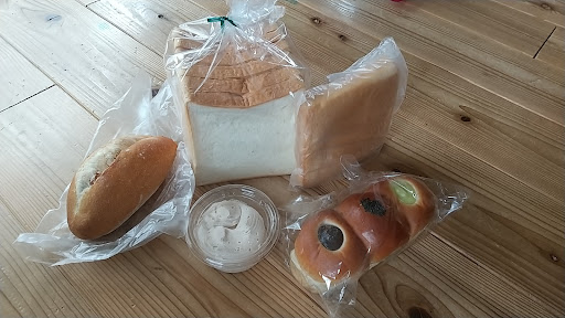 Read moreこじんまりとしたお店です。 食パンを購入すると、好きな枚数にカットしてくれ、クリームをおまけでくれます。 食パンの耳もいただきました。 三色パンの中身は日々変わるようです。 今回はマスカットクリーム、あんこ、チョコクリームでした♪ フレンドリーなお姉さま店...