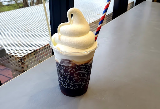 コーヒーフロートが食べたくて来店。コーヒーはラテorオレでしか飲めない子供舌な私ですが、ソフトクリームが溶けていないブラックの状態でも飲めました。苦味が少なくさっぱりとした味。ソフトクリームも美味しく、コーヒーと相性抜群です。普通のコーヒーだと豆選べます。 古本がたくさんあって購入できるので嬉しいです。掘り出し物がたくさんあります。ただ座席数が少なく、隣のテーブル等と距離がないので落ち着いて味わいたい人には不向きかも。