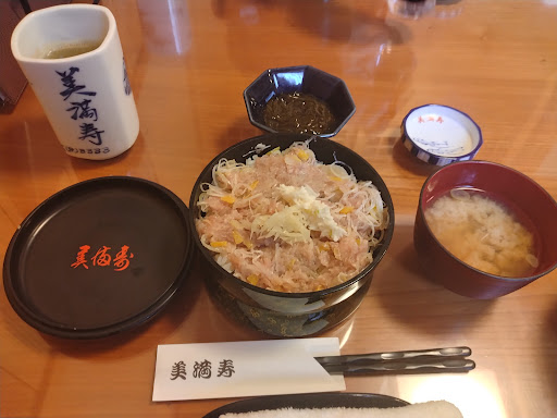 Read more昔から津幡にあるお寿司屋さん🍣 やはり常連さんが多く初めは入りにくいお店たけど、いざ入店したらそうでも無かったです(笑) ただ、お店入り口が家の玄関ぽいので入ってしばらく待ってたら玄関横にある扉がお店の入り口って知らなかった😅 最初は土曜日のお昼に来ましたがこの日は誰も居なく直ぐに注文出来て早速ランチを頂きました🎵 自分は海鮮丼ランチを注文し先に小鉢とお味噌汁が来たので一口・・うん、良いお出汁が出てうまゃい😋 程なく丼の方も来ましたが結構なボリューム😲 お魚も新鮮でマジ最高だし、玉子焼きも甘めで美味💕 寿司盛り合わせランチも十分に満足がいく内容でした👍 なので、ランチはオススメ❗ 次にお祝いと称してディナーへ(笑) こちらも、お通しを含めどれもが良かった😄 湯豆腐もまろやかで美味しいし、だし巻き玉子はやっぱり出汁が良いから美味😊 梅なんこつも梅と軟骨のコリコリ感がたまりません😍 握り寿司を頼んだのでそこまで他の料理は食べれなかったのは残念💦 ただ、ちゃんと金額が分かるのでそこら辺は安心です(笑) 金額的にも妥当なお値段だと思います👍 テイクアウトで前に食べれなかった物を注文し、自宅でも堪能しました✨ 海鮮春巻きピザが皮はパリッとしていて海鮮とチーズの相性バツグンで美味しかったのとぶりカマ塩焼きは頼んで正解でした😄 店内はご家族で経営されてるのでホワ...