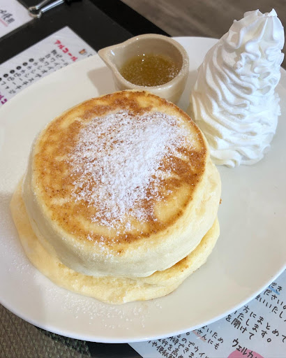 Read moreパンケーキは生地がふわふわでした。 注文してから焼くまで混んでるときだとかなり待つようになります。 定番商品の他に月限定のパンケーキがあるので選ぶのに悩みました苦笑 友達とマルゲリータピザをひとつ頼んで半分して食べました。 マルゲリータピザは平均的な大人の女性の手を2回り大きくしたくらいでした。 あとナゲットを注文。某ファストフードより小さめでした。 パンケーキを美味しく食べたかったのでこれで私達は十分でした。 今はコロナのためか滞在時間が2時間までと決められてます。 駐車場は少し離れたとこに止めた方が無難かもです。 店の前は通りが多くせまいです。 あと、予約して行った方がスマート。 私は...