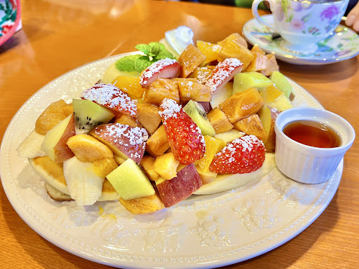 コーヒーのお供にパンケーキを頼んだのですが、びっくりするくらいのフルーツてんこ盛りで、2人で分け合って食べましたが大満足でした。