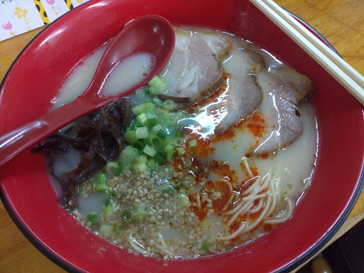 Read more金曜20:00頃訪問。待ちなし。 本場あっさりな豚骨ラーメンがいただける(らしい)。 豚骨ラーメン、味玉、餃子注文。 豚骨ラーメンはあっさり、初めは物足りないかなと感じたが食べ進めていくと丁度いい。ゴマやキクラゲ、辛めのネギが麺に絡まって一口一口変化が楽しめる。卓上の紅しょうがを入れてさっぱりと。 味玉は黄身が絶妙。トロッとしっかり味染みで美味しい。 餃子は小ぶりな一口サイズ。しっかり味がついており、ビールと合いそう。