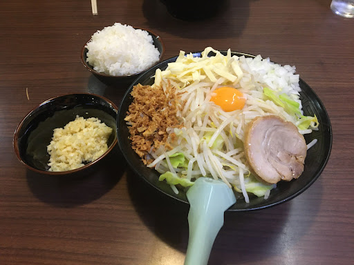 2021.03.01 麺8点 まぜそば880円 具9点 総合 8/10点 なんとなくまぜそばを選択。 【麺】 ラーメンより少し太い、中加水ぐらいでもちもちしつつコシもあり好印象。味の強い具材をしっかりまとめ上げているぐらいにいい麺。作りとしては二郎系の店でたまに見るもやし多めの色々な味をのせてくれるスタイル。元ダレは酒醤油ベース、アブラはソコソコ、まぜそばながらスープなんじゃないかってぐらいひたひたに麺がタレに浸かっている、が、塩分は適量。アブラ多めオーダーしてもうまそう。 【具】 チャーシューは普通、若干小さめ。が、ほかの具がなかなかよかった。まずチーズが最初からもりもり載ってるのがテンションを上げる、しかもしっかり仕事するチーズで濃厚さを増してくれる。オニオンフライも好印象、味がつよすぎる調味料という印象だったが、全体的に濃厚なものベースになっているまぜそばにはよく合っていた。香ばしさを足してくれる。普通に嬉しい生卵、そこに豪快に入っている玉ねぎがアブラをさっぱりさせてくれていいバランス。そして二郎ベースゆえニンニクもよく合う。多めに入れても普通にうまい。ちなみに野菜増しにしたが丁度いいぐらいの量だった。これらをいろいろなバランスで一口一口変えながら食べるのがたまらない。様々な味が口で踊るテンションが上がる一品。 【ごはん】120円 お変わりし放題、まぜそばだと消費が難しくなるが、最後にひたひたののこったタレで食べてもそこそこうまい。 【ラーメン】780円 普通に大好きなクリーミー系のスープ。若干鶏の臭みが残ってはいるが、好みの範囲。そこに家系としてはうまい方と思われる中加水ぐらいの麺が受け止め全体的にレベルの高さを伺える。これが茨城そこらじゅうで食べられるのはありがたい。クリーミー系では鶉の卵が欲しくなってしまうのは欲張り過ぎかな 【総評】 安定した味のクリーミー家系。ご飯お変わりし放題という家系らしさも魅力的。まぜそ...