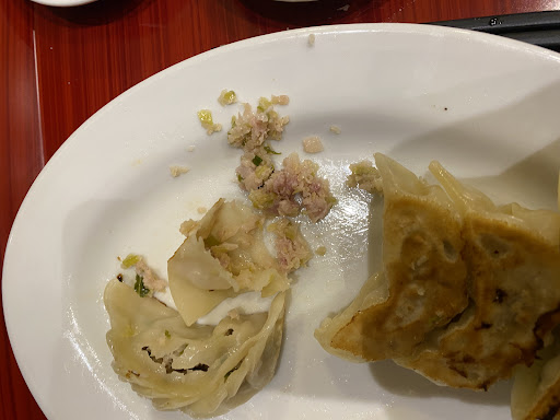 まさかとおもいつつ食べていくと餃子は冷たく、4つ食べた時点で「おえぇぇぇ」っとなった。肉が腐ったような傷んだ味がしたのでつかさず吐き出しました。驚いて中を開けてよく見ると餃子の肉が「生」でした。まぁ半生?でも冷たかったので生の部分もあったと思います。つかさず友人とやばいやばいやばいとなり早く出よう!帰ろう!と慌てて店を出ようとしました。会計しようとして、ついレジで「餃子の肉、生だったよ!」というとレジの女性がそれを厨房の男性たちに伝えると中国語でもめ始め、(まぁ別に生だったことを知らせただけなんですけど)最終的にはお金はいらないですと言ってもらえました。が、回鍋肉の方はまずかっただけなので払いました。