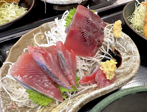 This is an unexpectedly good restaurant serving Japanese seafood. As I donโt often come to this area, I took the opportunity to try out cod sashimi dinner-set (n.b. as cod rots fast, you can only serve cod sashimi close to the sea) and the heart of a shark, also sashimi, as a stand-alone dish.