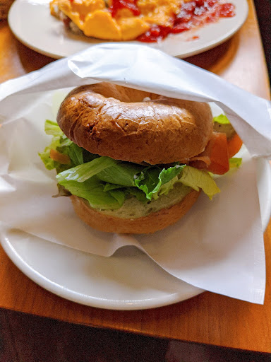 ベーグルサンドとコーヒー、サラダを注文していただきました。