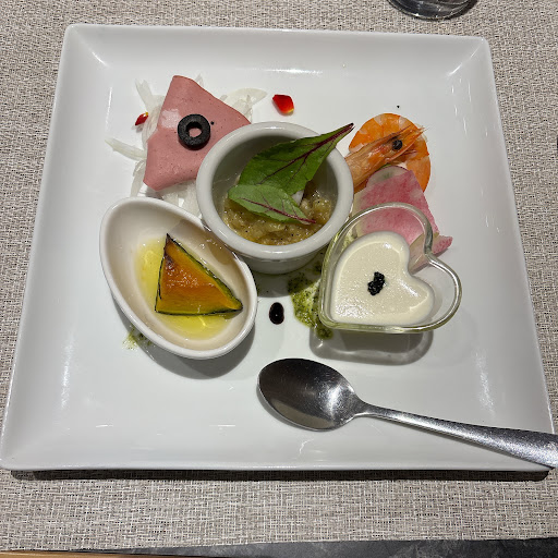 子供用の椅子はありましたが、大人用の椅子に置くだけのタイプでベルトもなかったため、心配な方は持参した方がいいかな?と思いました。テーブルに付けるタイプや、ちゃんと脚が着いているタイプの子供の椅子があると助かります。 注文して少しすると、前菜、フォカッチャ、スープが来ました。お料理の到着は早いなあ!といった印象。お子様ランチも頼みましたが、すぐにきました!お子様ランチは、パスタ、チキン、ソーセージ、フォカッチャ、スープジュースと、ボリューミーでとても美味しそうでした🥺 前菜は、お野菜の素材の味を大切にしている感じでした。 フォカッチャは塩っけあって美味しい!メインも柔らかくて美味しかったです🙂↕️ デザートは、甘くて少し飽きてしまいましたが、どれもボリューミーでした!!