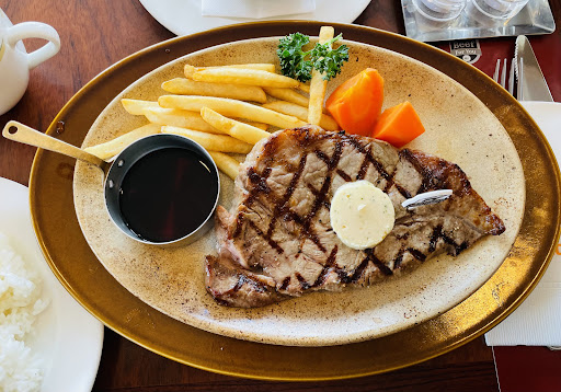 Read more古くからあるお店ですが、清潔感がありコロナ対策もきちんとされていました。 頼んだメニューは、アンガスサーロインステーキ、黒毛和牛ステーキ、うにといくらのトマトクリームソース、キャラメルナッツブリュレ、苺のシフォンショートケーキ、サラダです。 ステーキ類は焼き加減を選べず、ウェルダンのみだったので少し硬いですが、味は良かったです。パスタは太めのもちもち麺で、ソースは濃厚で美味しいですが、後半味が濃すぎてきつくなってきます。サラダを頼んで正解でした。 ショートケーキは二人でシェアする大きさで、クリームの味が凝っていて、美味しかった。苺が新鮮!ケーキ屋さんより新鮮かも知れない。 ナッツのソースも合う!デザートにも手を抜いてないんですよね。 食事が良かったのに加え、接客がとても素晴らしい事に感動しました。ベテランの方にあたったのでしょうか。沢山のお客さんを一人で完璧に対応されていました。 長くなりましたが、トイレについて、最近見かけなくなった便座シートがありました。ありがたいです。手洗い石鹸も除菌タイプ、ペーパータオルもしっかり補充してあって完璧でした。 初めから終わりまで、気持ち...