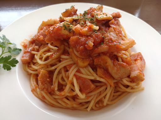 店内の感じは 簡易な学食のような印象。 パスタ(スパゲッティ)はグレードの低いパスタで粉臭い。 ボリュームはまぁ普通よりある感じだけど これはこれでニーズがあるんでしょうか。