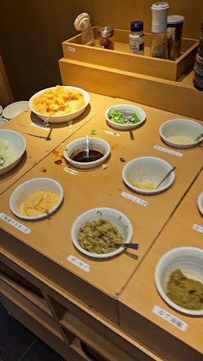 ・野菜、薬味類の補充が甘い これも気にする店員がいないためか飛び散ってるのがそのままだったり、空になってて催促が必要なことが多い