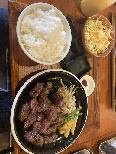Read more★4.5 『旨いステーキ✨を、白飯と味噌汁と一緒に気楽に箸で食らう(笑)』 日本人に嬉しい、そんなお店(人気店)です😁✨ ★『待ち時間』 平日☔、開店10分前に到着しましたが、すでに20人くらいの行列。 開店と同時に18人ほどは入店できますが、そこで入れないと拉麺屋さんのような回転率はないので暫く待ちます。 店外でメニューを頂いて、吟味のうえ注文しときます。 11:20 到着 11:30 開店 11:40 メニュー受領、注文 12:00 入店 12:05 着丼✨ 12:15 美味しく完食👍 ※意外に、平日の13:00頃は並んでなかったので昼飯時後半がよいかもしれません😌。 ★『お肉・味』 やわらかく、脂も少なくて美味いです😄✨。おそらく『サガリ』?、旨味があって、ヘルシーで満足感、お得感があってグッド👍です😁👍✨✨ 脂身が少ないので、思ってる以上の量を食べれます😊。 ★『たれ等』 岩塩、胡椒、番人のたれ、おろしニンニクが2人に1セット、卓上にあります。 お勧めは『番人のたれ+おろしニンニク』✨。ニンニクのピリッとした辛さがよいアクセントに、、😁✨ ★『席数』 カウンター席×10席 テーブル席(4人席)×2卓 ★『駐車場』 お店のとなりには『拉麺の人気店(油そば...