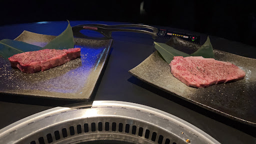 牛タン→焼きすき→メインステーキの順に店員さんが焼いてくれました、その都度網を交換して丁寧でした 牛タンと焼きすきがとても美味しかったです 後半の焼肉、カルビ、ハラミ、シマチョウはセルフで焼くらしいです メインまでは美味しかったが後半の焼肉3種の肉は残念な質でした